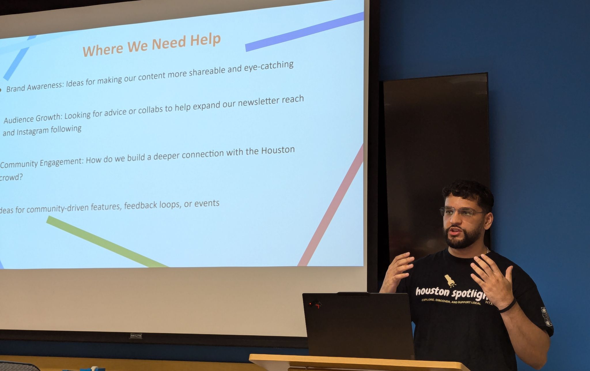 - Identify a real problem worth solving: They built Houston Spotlight after realizing there was no centralized, authentic hub for niche Houston events.