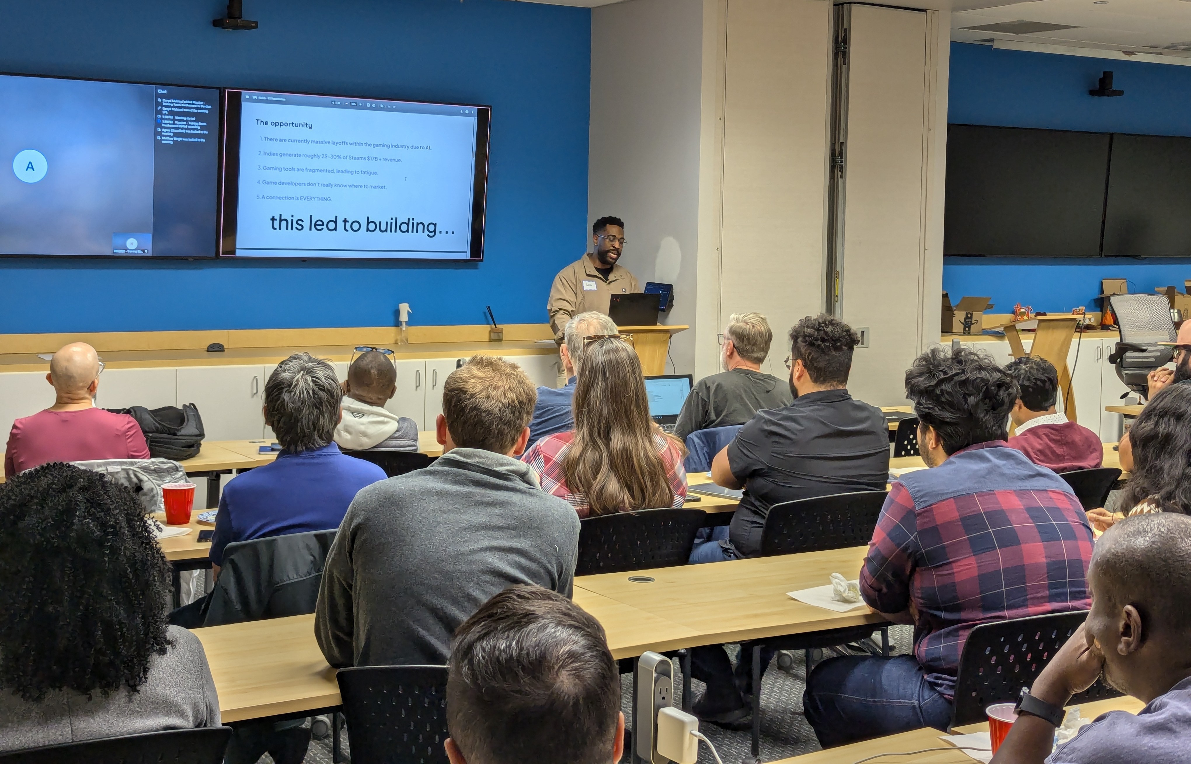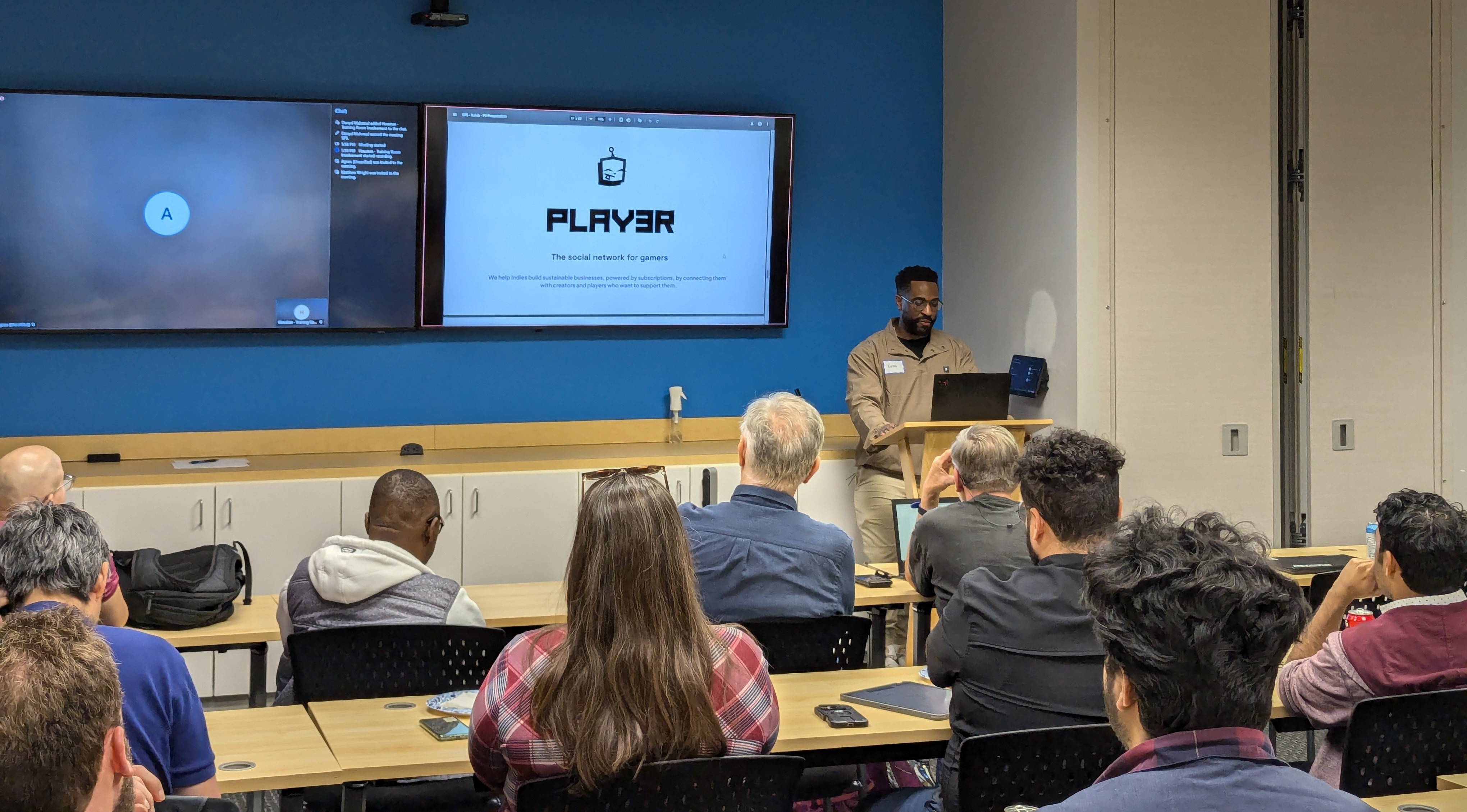 Guest speaker, founder Kaleb Smith, shared his journey building his startup Player 3, a social network and marketplace that centralizes community, content, and support for gaming creators. It was a candid look at what it really takes to build a startup, focusing on the iterative reality behind the scenes.